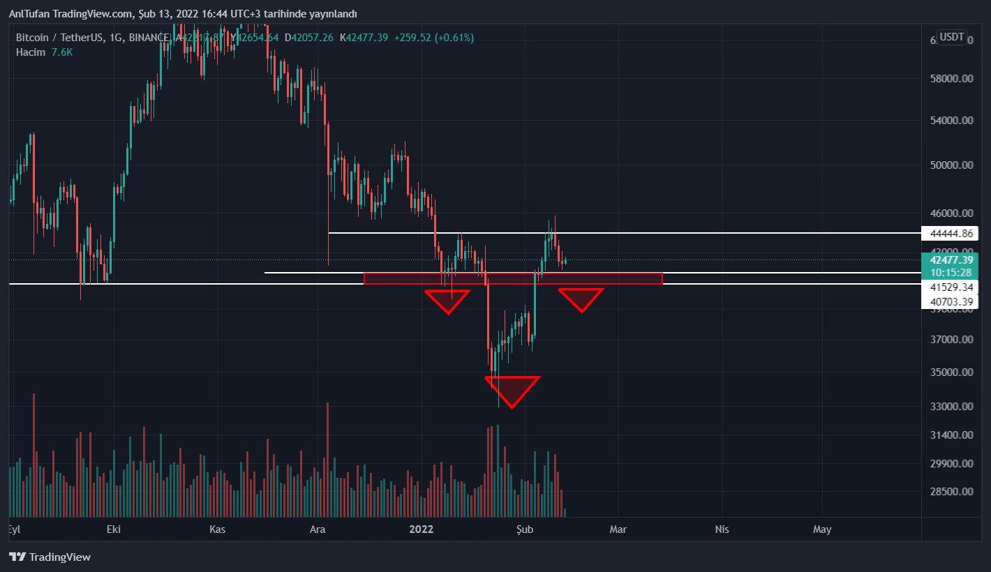 Yayın saati itibariyle 42.000 dolar seviyesinin hemen üzerinde bulunan Bitcoin, 45.800 dolar direncinden reddedilmesinin ardından sert bir düşüş yaşadı. Bu düşüşte 41.700 dolar bandına gerileyen BTC, bu destekten tepki almış gibi gözüküyor.