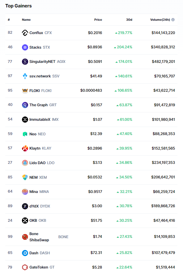 CFX haricinde aşağıda yer alan altcoin’lerde şubat ayı özelinde yüzde 50’den fazla değer kazandı: