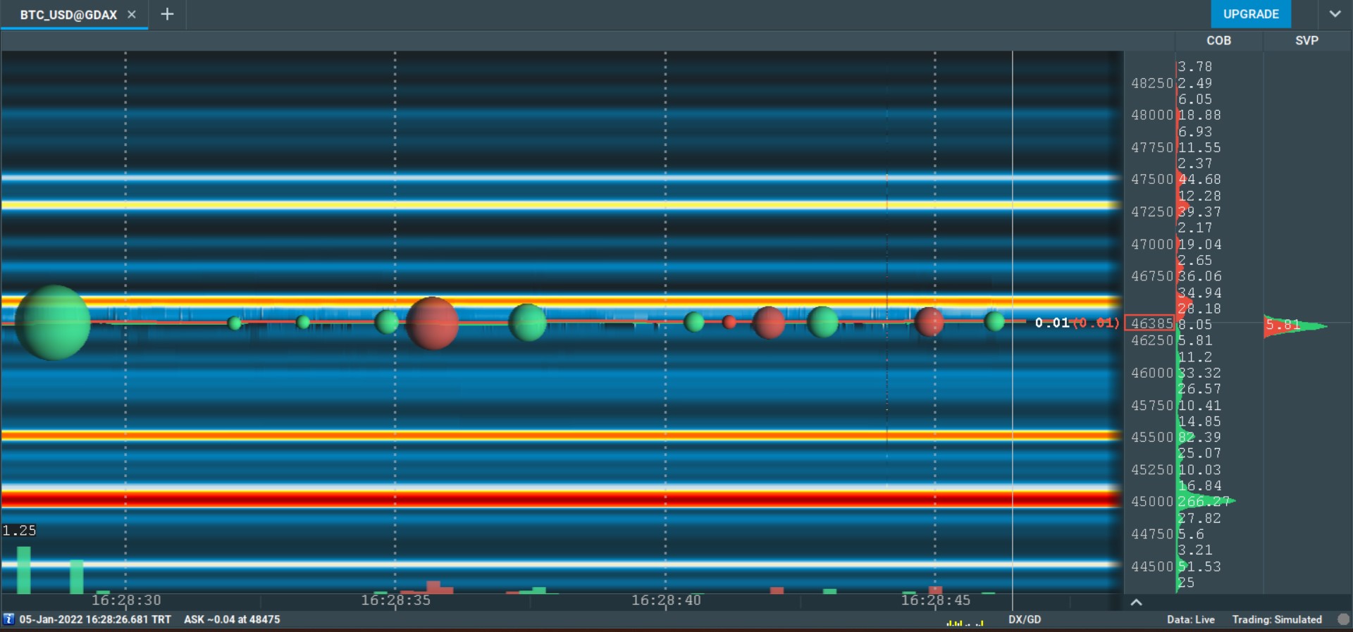Alım satım emirlerini görebildiğimiz indikatörümüze göz attığımızda, gözümüze ilk çarpan nokta 45.000 dolar seviyesinde bulunan 266 Bitcoin’lik alım. Teknik olarak bu seviye bir destek olmasa da balinalar BTC’yi 45.000 dolar altına indirmek istemiyor.