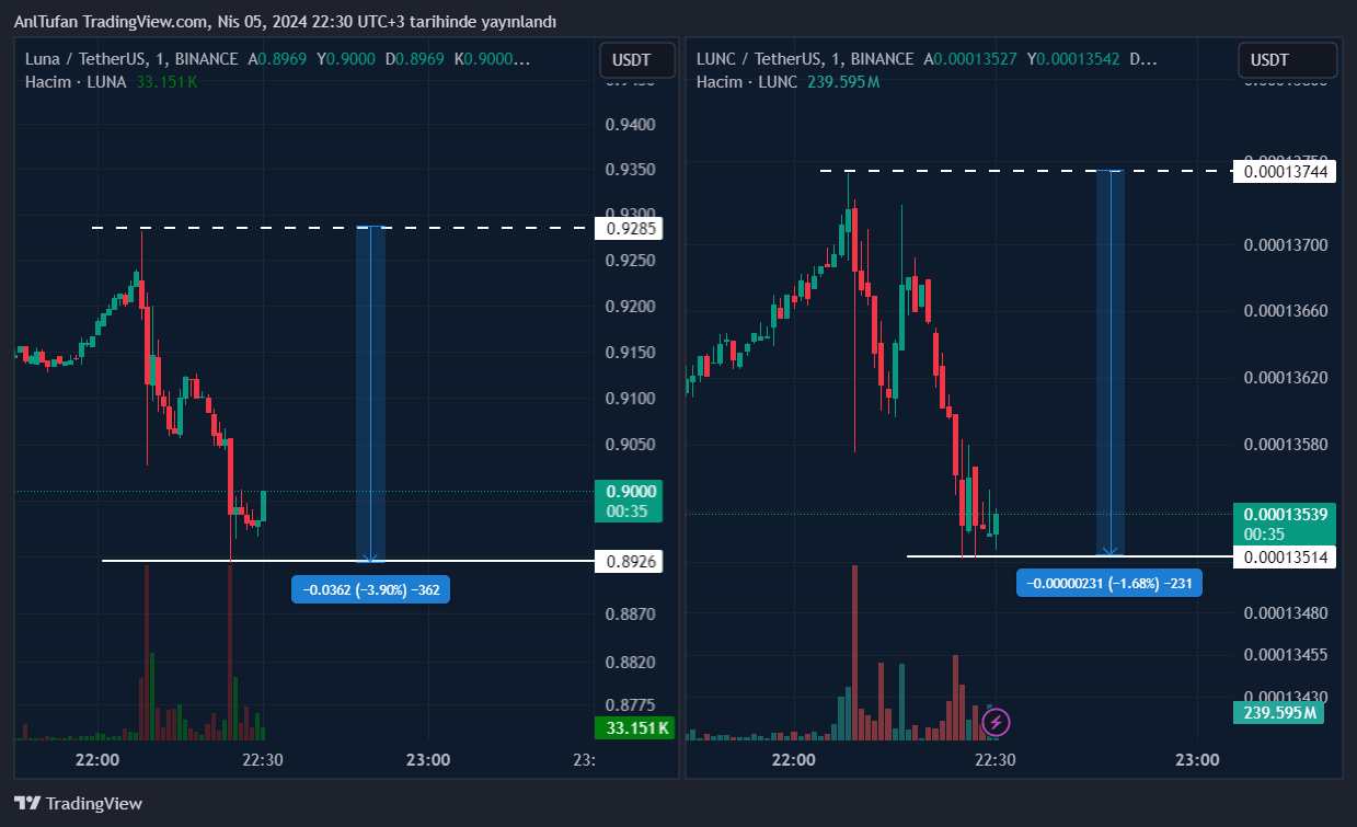 Her ne kadar Do Kwon’un menkul kıymet dolandırıcılığından suçlu bulunması beklenen bir gelişme olsa da, LUNA ve LUNC bu haber sonrasında %2 – %5 arasında düşüş yaşadı.