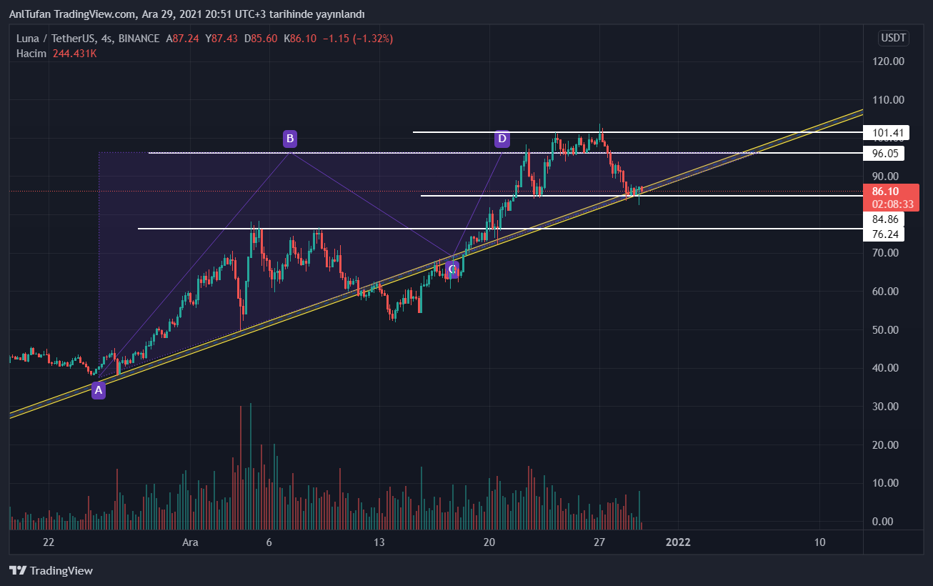 101.41 dolar seviyesi LUNA için kritik bir direnç olarak görülüyor. Bu direnç seviyesinin kırılması yeni ATH seviyelerini getirebileceği gibi, hacimli bir düşüş tekrardan yükselen trend desteğini test etmesi anlamına geliyor.