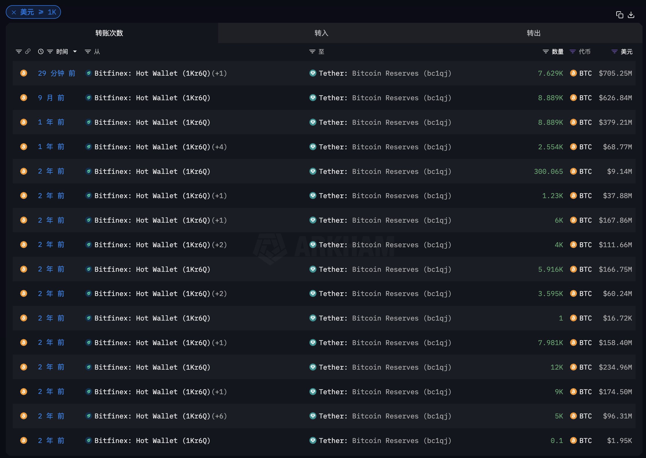 “30 dakika önce, USDT ihraççısı Tether, Bitfinex’ten 7.628,9 adet BTC (705 milyon dolar değerinde) çekti.