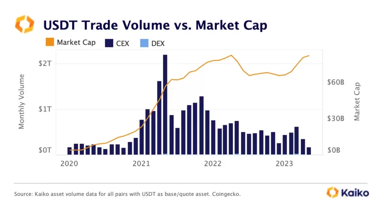 “Öyleyse, hem CEX’lerde hem de DEX’lerde ticaret hacmi cansız olmasına rağmen neden Tether’in piyasa değeri artmaya devam ediyor?