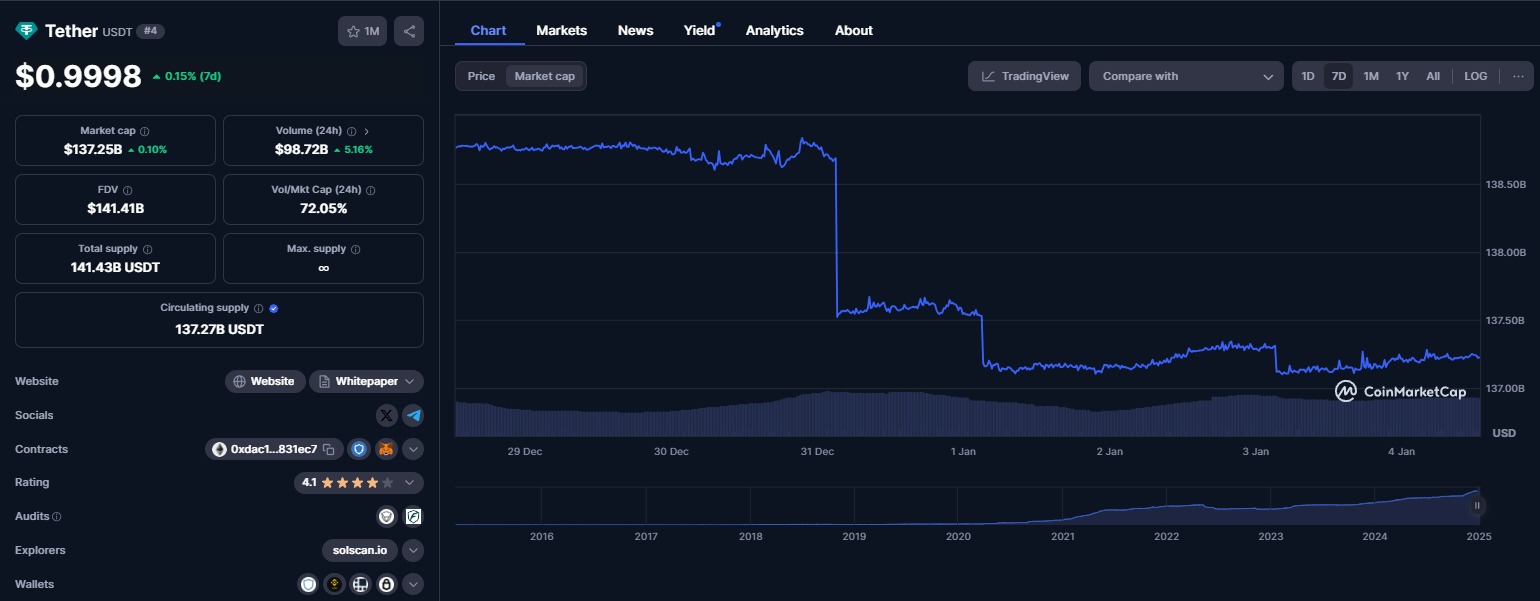 Bu haftaki düşüş, Avrupa Birliği’nin Kripto Varlık Piyasası (MiCA) kurallarının 30 Aralık’ta yürürlüğe girmesi ve çeşitli borsaların düzenleyici kaygılar nedeniyle USDT’yi listeden çıkarma kararı nedeniyle gerçekleşti.