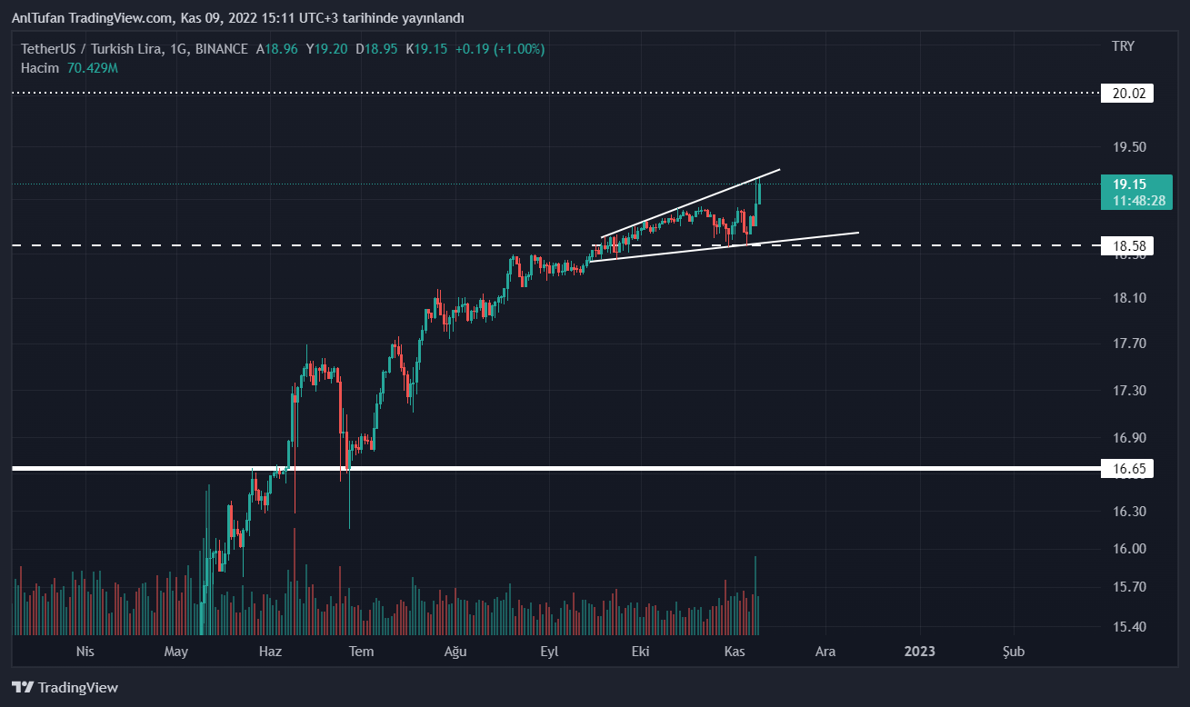 Lider kripto para birimi Bitcoin‘in (BTC) 17 bin dolarında altına sarkması ise anlık olarak USDT’nin değerinin 20 Türk lirası seviyesini aşmasını dahi sağlayabilir.