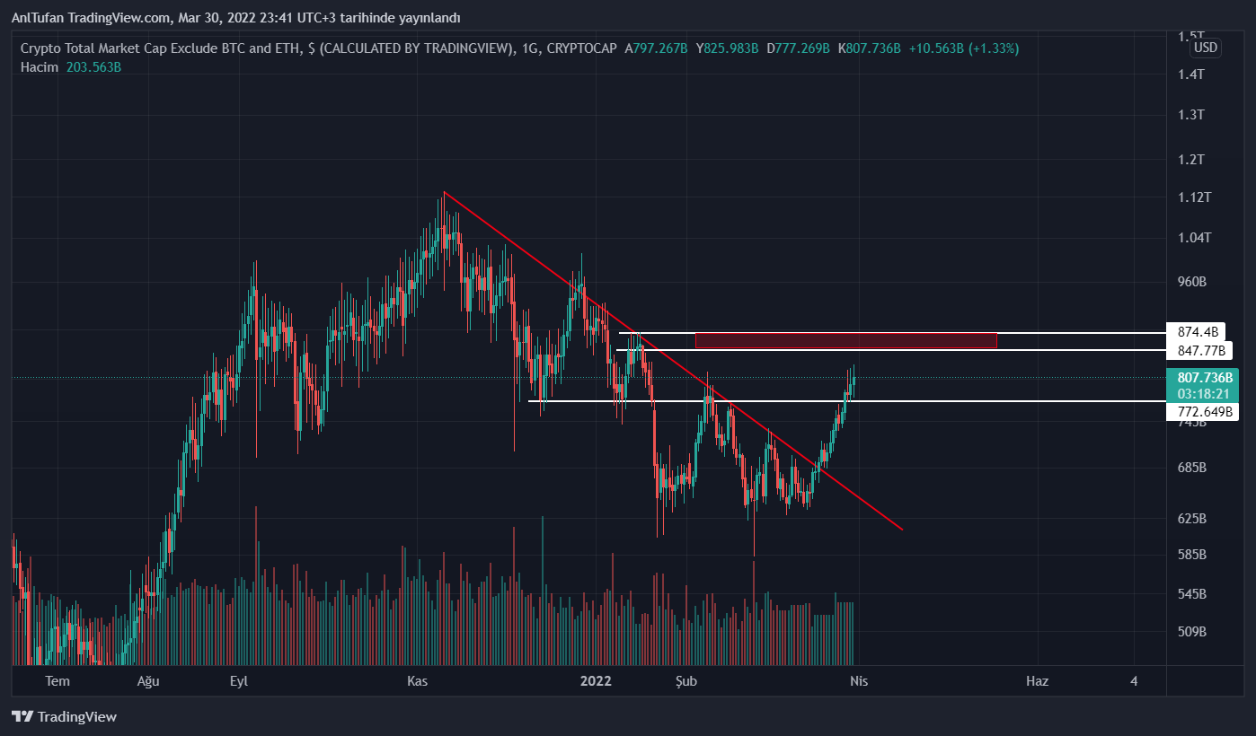 Altcoin yatırımı olan okurlarımız, Total 3 grafiğindeki seviyeleri yakından takip edip ona göre pozisyon aldıkları takdirde daha güvenli yatırım yapmış olacaklardır.