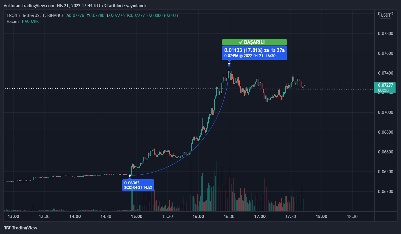 Justin Sun’ın yaptığı bu duyuru ardından sonra ise TRX çok sert bir şekilde yükselmeye başlamış durumda.