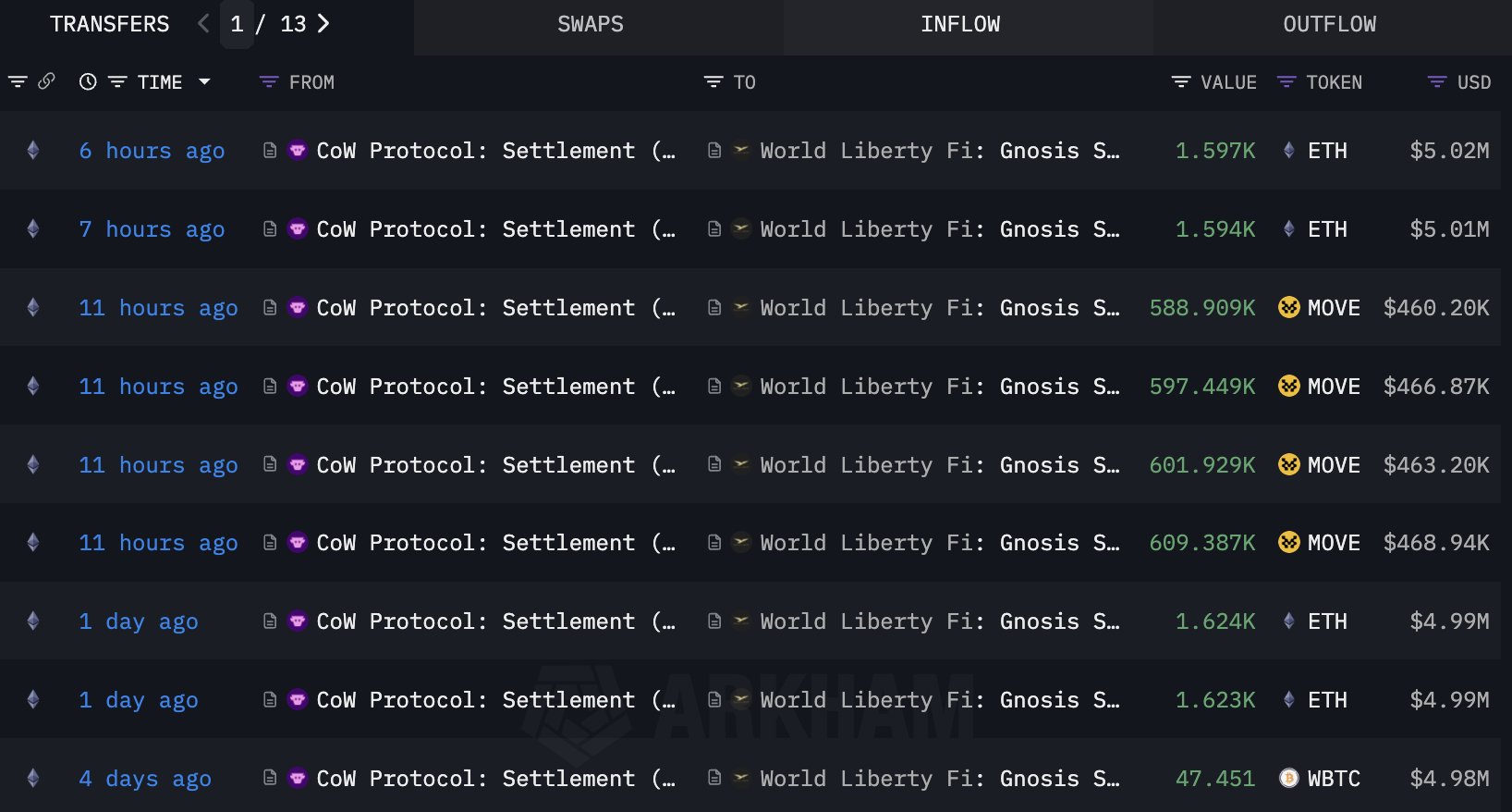 “Trump’ın kripto projesi World Liberty, son 12 saatte 3.191 adet ETH (10 milyon dolar değerinde) ve 2,4M adet MOVE (1,88 milyon dolar değerinde) daha satın aldı.
