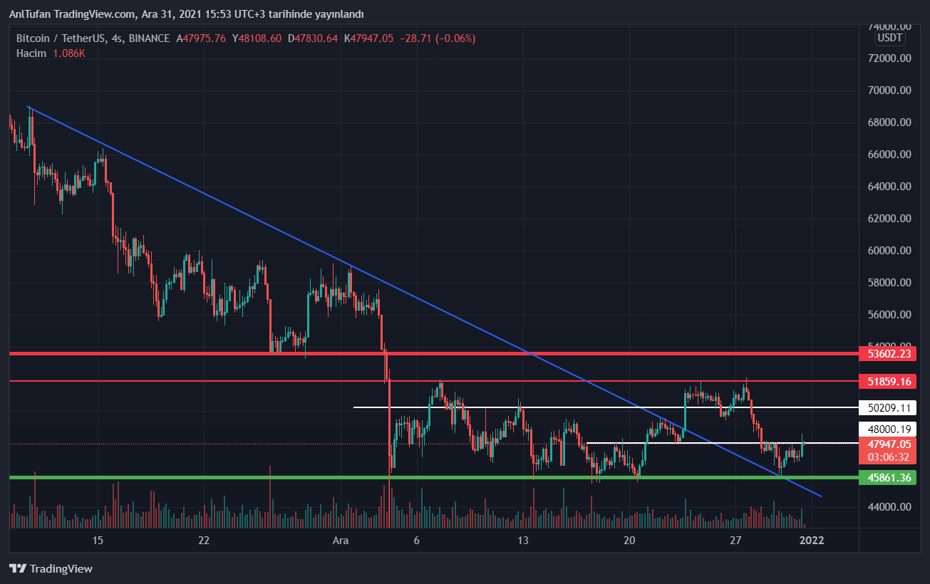 Yayın saati itibariyle 47.900 dolar seviyelerinde bulunan BTC, düşen trendin kırılımın ardından 45.861 dolar destek seviyesinden tepki alarak tekrar yükselişe geçmiş durumda.