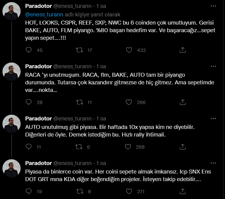 Paylaştığı altcoinlere inancını bir süredir dile getiren kripto fenomeni, yaptığı bir çok tahminlerle gündemde oturmaya devam etmekte.