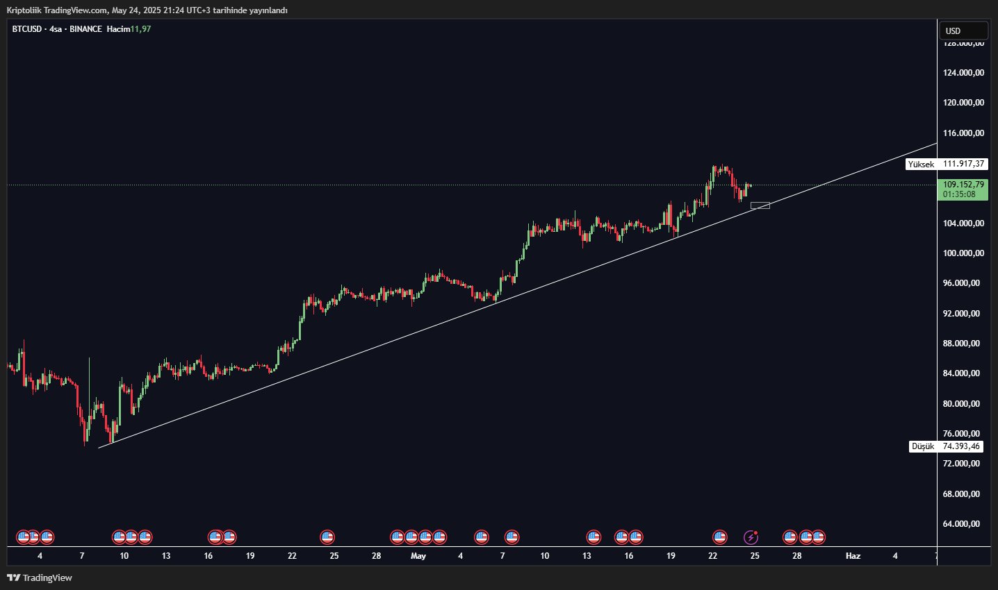 Bitcoin (BTC) kısa vadede maksimum 105.750 dolar civarındaki desteği test eder, haricinde BTC’de bir problem yok diye düşünüyorum.”