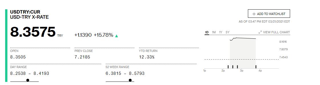 Faiz artırımı kararından sonra hükümetin, eski Merkez Bankası Başkanı Naci Ağbal’ı görevden alıp yerine Şahap Kavcıoğlu’nun getirmesinin akabinde doların ilk tepkisi gecikmedi.