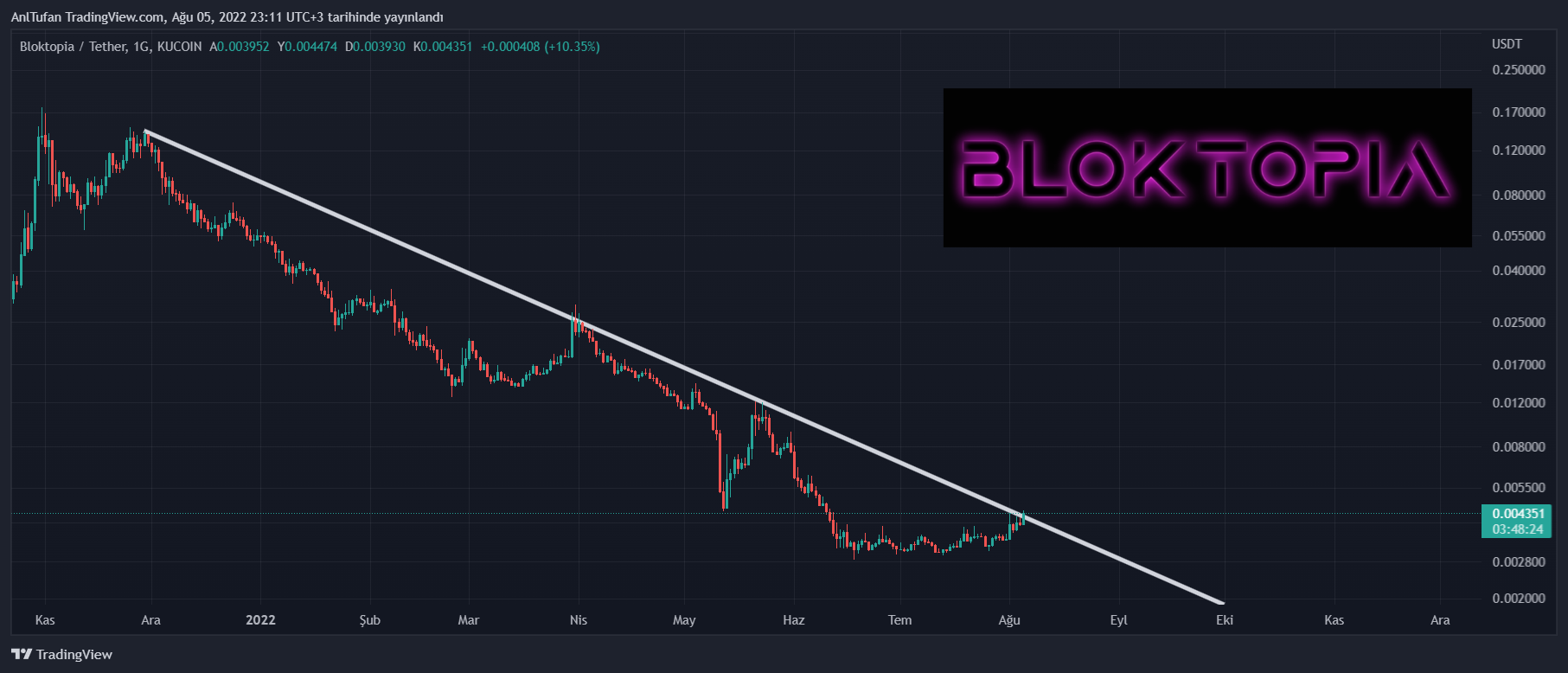 9 ayda oluşmuş 3 temaslı devasa bu düşen trendin kırılması, Bloktopia için genel düşüş serüvenini sonlanmasını sağlaması bekleniyor.