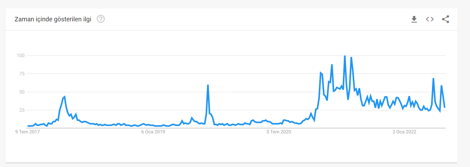 Her ne kadar 2018 ayı piyasası dönemlerindeki seviyelere kadar bir gerileme meydana gelmemiş olsa da, Bitcoin ve kripto para birimleri üzerindeki ilgi her geçen gün daha sert düşüşler yaşıyor.