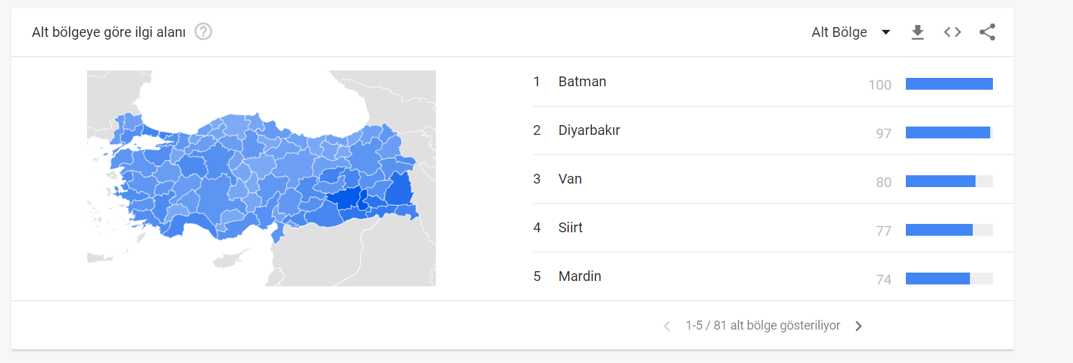 Google Trends’in aktardığı bilgilere göre Bitcoin‘e en çok rağbet gösterilen ilimizin Batman olduğu gözlenmekte. Batman’ın ardından sonra ise sırasıyla Diyarbakır, Van, Siirt ve Mardin geliyor.