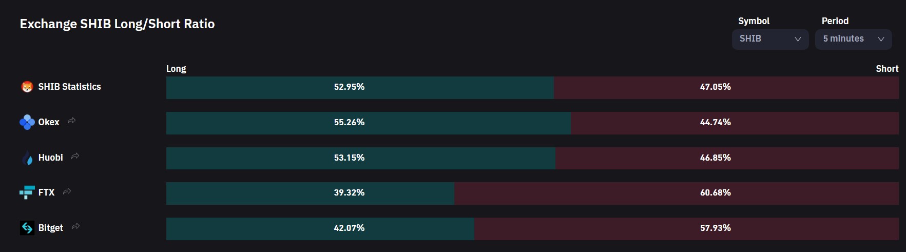 Kaldıraçlı işlem ve vadeli işlem yapan kripto para yatırımcılarının genellikle tercih ettiği FTX borsasında, Shiba Inu için açılmış short pozisyon oranları %60’a dayanmış durumda.