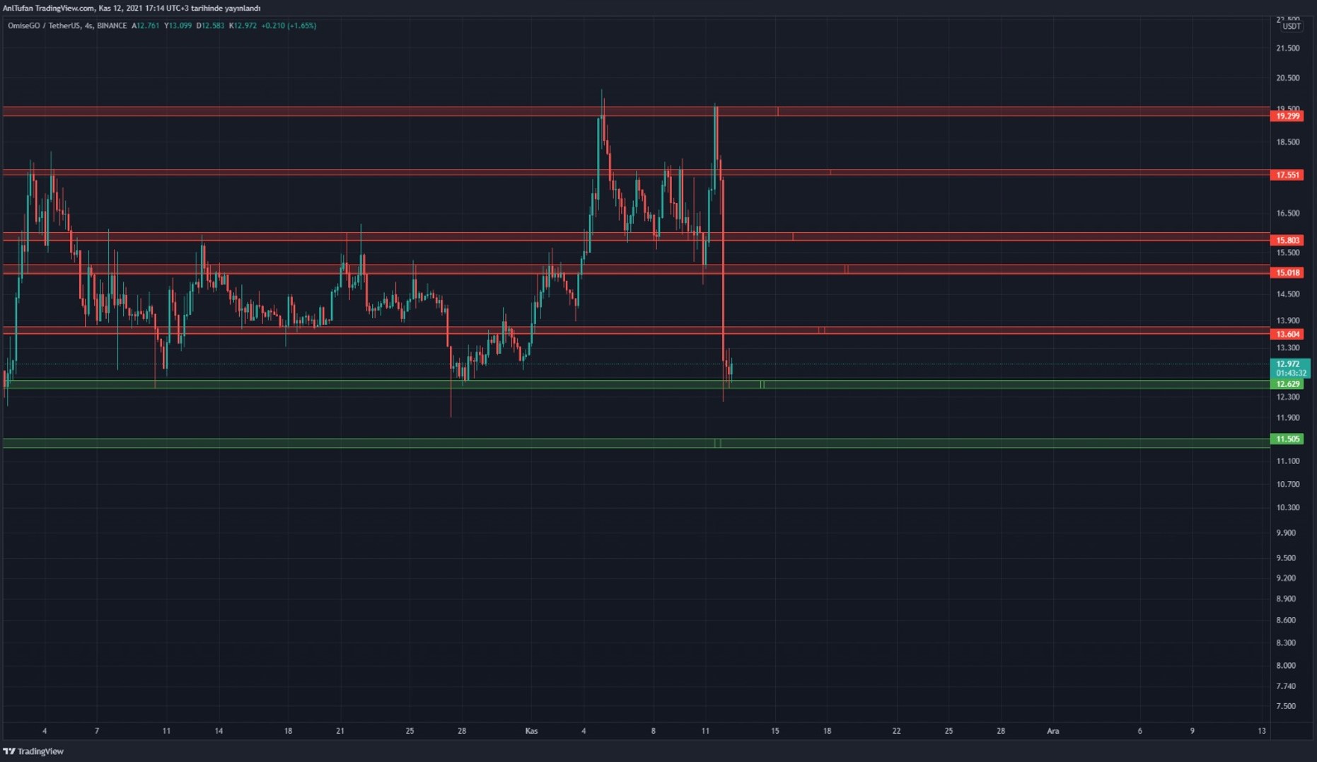 12.629 dolar desteğinin altından 4 saatlik kapanış yapması durumunda, 11.505 dolar desteğine kadar gerileyebilecek olan OMG, 12.629 ana destek seviyesinden yukarı doğru trendinin dönmesi durumunda, önce 13,604 ardından ise 15,018 dolar direnç seviyelerine kadar bir yükseliş yapabilir.
