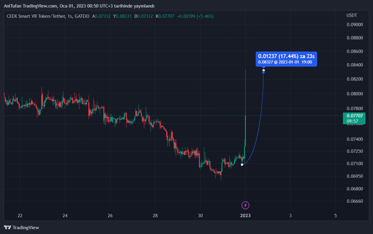 An itibariyle Türkiye için 2022 yılı sona ermiş durumda. Ülkemizin yeni yıla girmesinin ardından sonra ise Türk kripto para yatırımcılarının yakından takip ettiği bir metaverse altcoin’i olan CEEK VR (CEEK) sert bir şekilde yükselişe geçti.