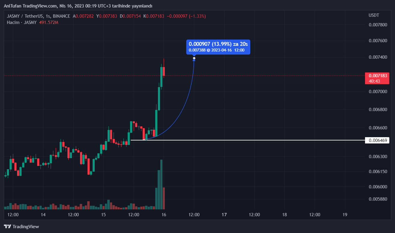 Piyasada durgunluk devam ederken son 3 saat içerisinde yüzde 14’lük bir yükseliş yaşayan JASMY, tekrardan isminden söz ettirmeye başlamış gibi gözüküyor.