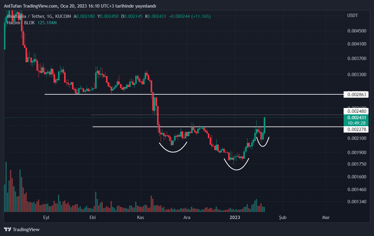 Geçtiğimiz dakikalarda ise Türk yatırımcıların yakından takip ettiği Bloktopia’da (BLOK) sert bir yükselişin başladığı görüldü. Kritik bir direnç seviyesi olan 0.002278 doları aşmayı başaran BLOK, yatırımcılarını heyecanlandırdı.