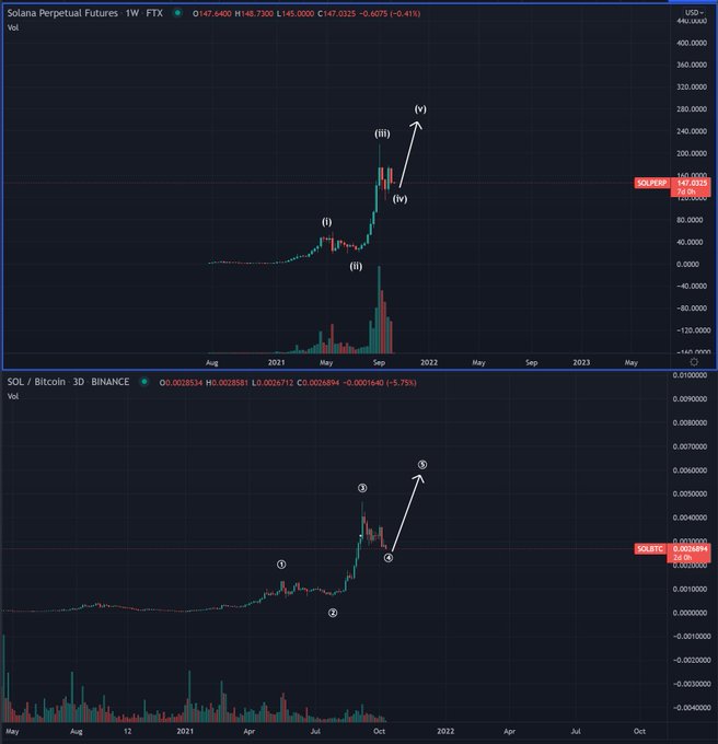 Bu haftanın başlarında yaptığı bir paylaşımda analist, beş dalgalı yükseliş trendinin dördünü sona erdirdikten sonra SOL/USDT ve BTC/SOL paritesininde %100’ün üzerinde bir artış olacağına inanıyor.