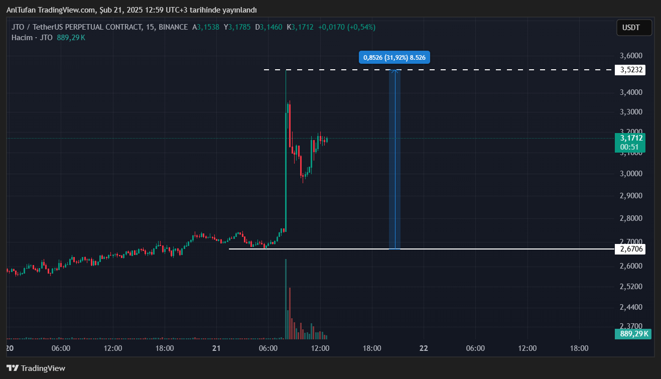 Bu son paylaşılan listeleme duyurusuna göre Jito (JTO) isimli altcoin Upbit borsasına eklenecek. Binance’de de listelenmiş bir altcoin olan JTO, bu listeleme duyurusuyla birlikte %32 oranında bir yükseliş gerçekleştirdi.
