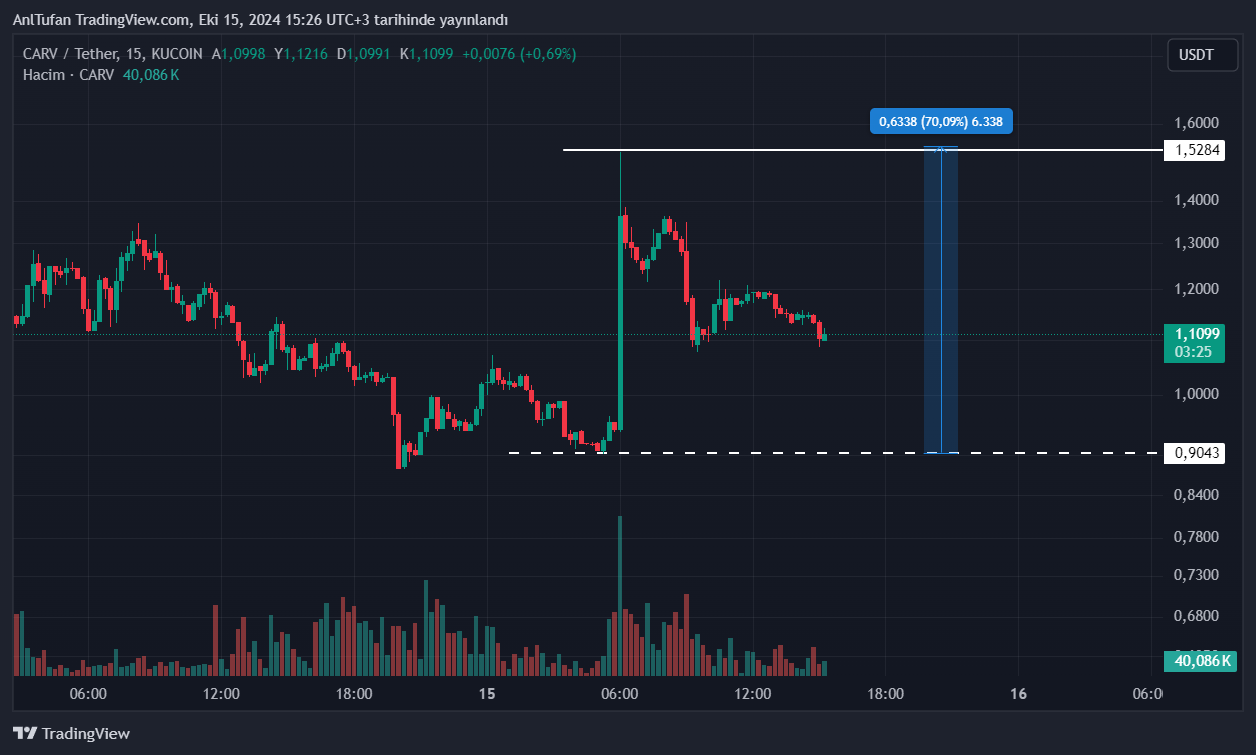 Son gelen listeleme duyurusunda sonra ise CARV fiyatında devasa bir sıçrama meydana geldi. Kısa bir süre içerisinde %70 oranında değer kazanmayı başaran CARV, sektörün gündeminde yerini aldı.