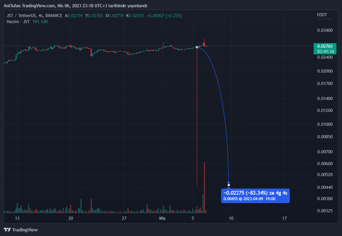 Tron kurucusu Justin Sun’ın ürünü olan JST, Justin Sun hakkında ortaya çıkan bazı haberlerin ardından devasa bir satıcı baskısı ile karşı karşıya kalarak çöküş yaşadı.