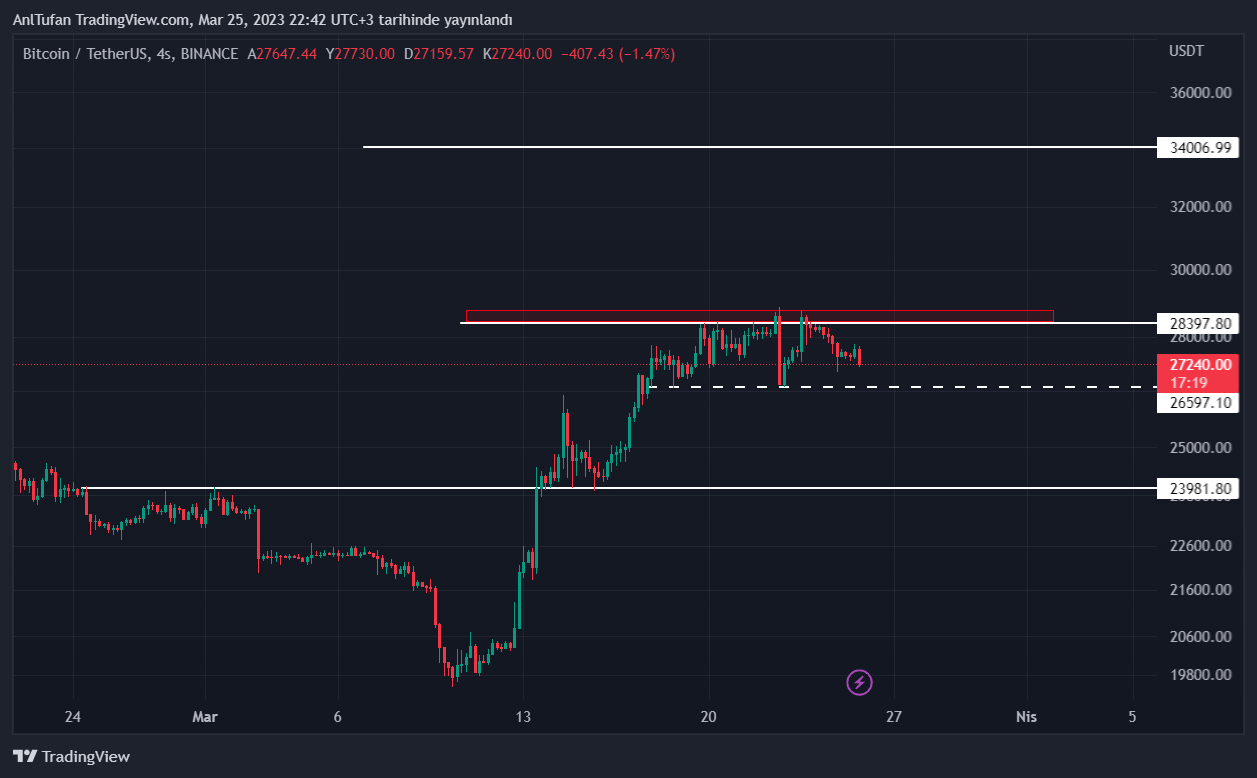 26.500 dolar desteğinde tutunduğu sürece tekrardan 28.400 – 28.800 dolar direnç aralığını hedefleyebilecek olan BTC, bu yükselişleri ile birlikte altcoin’lerin tekrardan değer kazanmasını sağlayabilir.