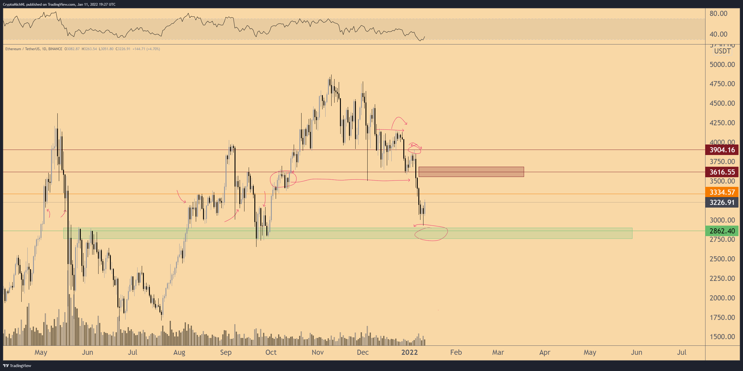 Poppe, Bitcoin’den sonra piyasa değerine göre en büyük ikinci kripto para birimi olan Ethereum’a (ETH) bakıyor. Analiste göre, önde gelen akıllı sözleşme platformu ETH’nin yönünün nereye doğru gideceğini belirlemek için iki kilit seviye var.
