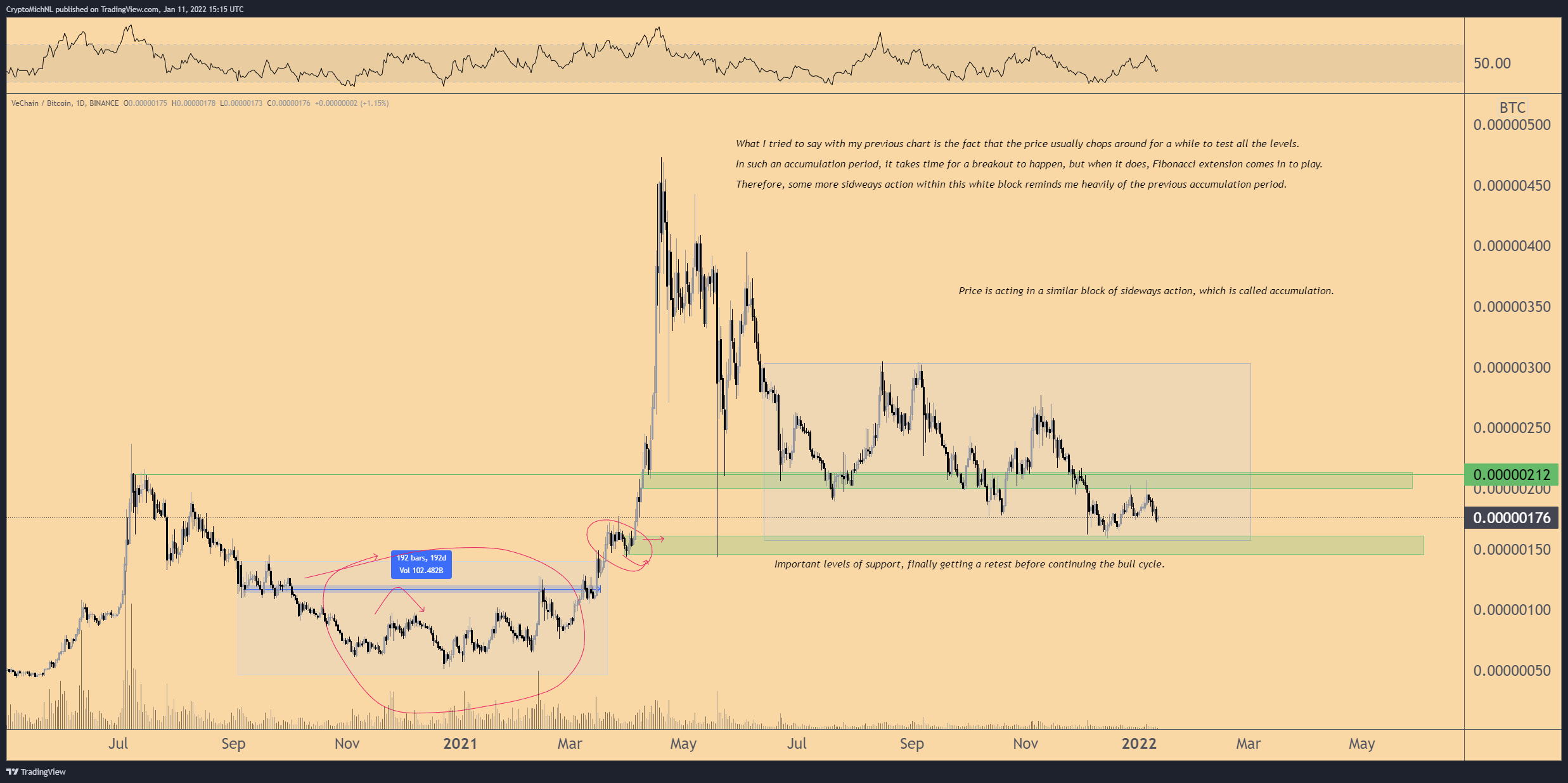 ”VeChain fiyat hareketleri 2020-2021 ile karşılaştırılabilir. yeni bir ralli için önemli bir direnç seviyesini henüz kırIlmadı. Bir tepki alana kadar burada biraz konsolide olacağını düşünüyorum.”
