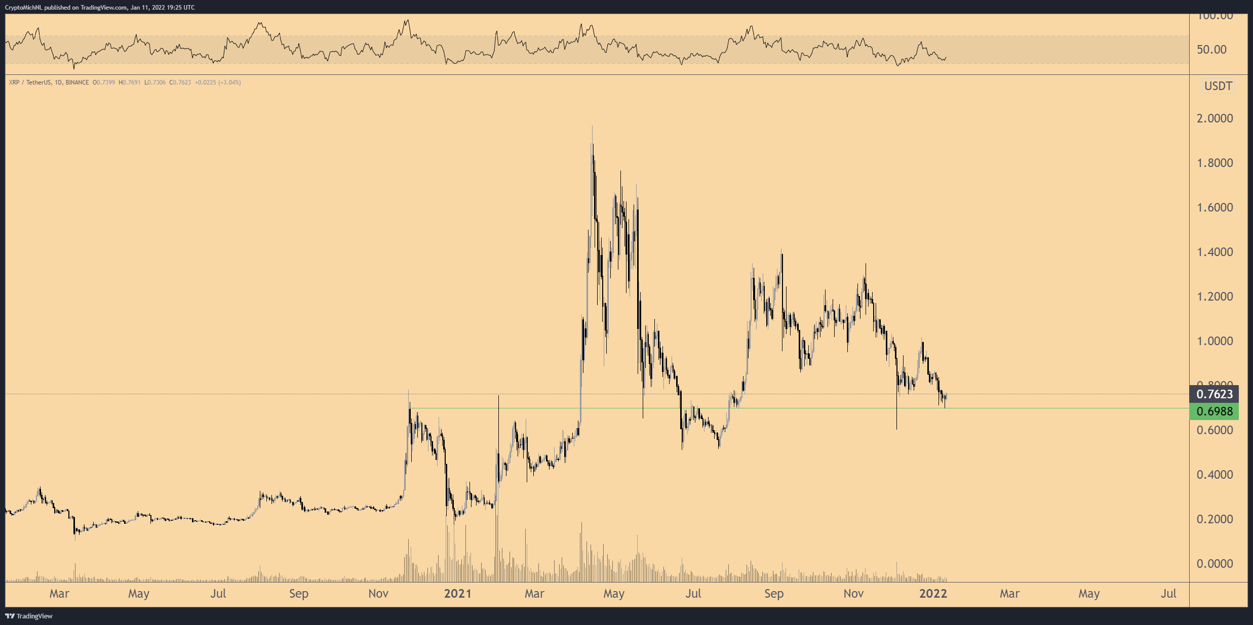 Popüler analistin değerlendirmeye aldığı bir diğer altcoin, en son 23 Aralık tarihinde 1 doların üzerinde işlem gören ve geçen hafta 0.70 ila 0.80 dolar arasında bir fiyat hareketi yapan Ripple (XRP) oluyor. Analist grafiğinde, XRP’nin geçen yaz aylarında kırılmadan hemen önce olduğu gibi aynı seviyelerde işlem gördüğünü söylüyor.