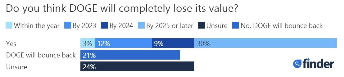 Fiyat karşılaştırma portalı Finder’ın 54 adet kripto para ve Web3 endüstri uzmanı ile yaptığı çalışmaya göre, Dogecoin ilerleyen yıllarda tüm değerini kaybedebilir.