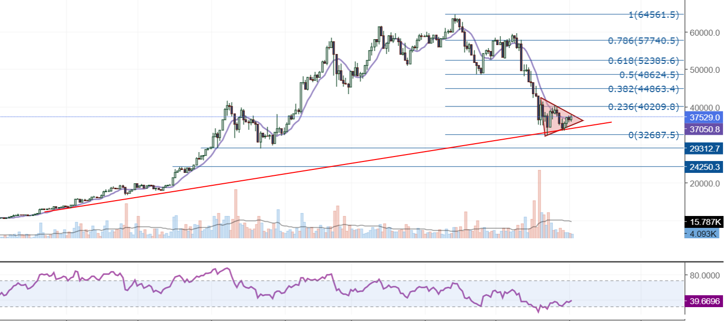 Trend desteğinden toparlamaya çalışan ve formasyon görünümünü bozmayan BTC/USD günlük grafikte 9MA ekseninde fiyatlanıyor. Formasyondan çıkış yönünün kripto para biriminin bir sonraki hamlesi üzerinde etkili olması bekleniyor.