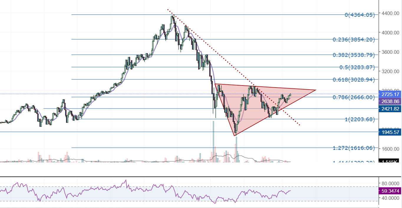 ETHUSD piyasa içerisindeki hakimiyetini artırmaya devam ediyor. 4 saatlik grafikte aşırı alım bölgesine geçiş yapan ve 2.670 direncini kıran kripto para birimi ilk etapta 2.900 seviyesine kadar ivme kazanabilir.