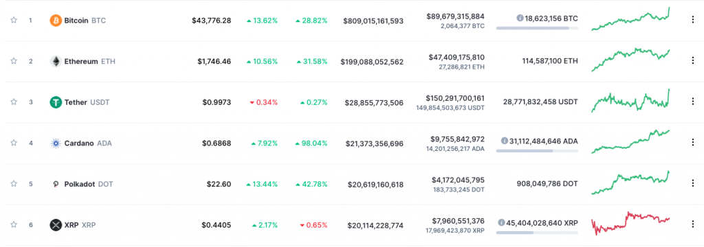 Geçtiğimiz ayın başlarında Polkadot’un (DOT) rallisi, XRP’nin yerini DOT’un almasını sağlamıştı. XRP fiyatı daha sonra Ripple davası ile ilgili açıklamalar sayesinde yeniden 0,40 doların üzerine çıktı ve 4. sıraya yerleşti.