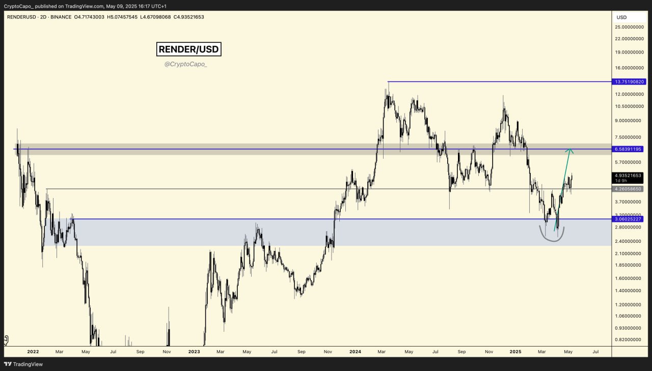 RENDER için hedefin 6 – 7 dolar aralığı olabileceğini savunan Capo, son RENDER analizinde şu sözleri aktardı: