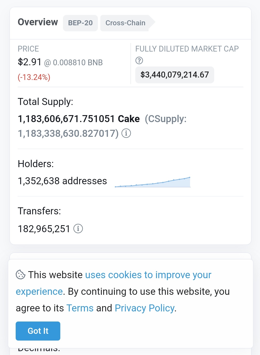 Şuan itibariyle gelen bazı bilgilere göre, CAKE arzı bir anda 750 milyondan 1.183 milyara yükseltilmiş durumda. Bu konu hakkında ekipte bir duyuru paylaşmadı.