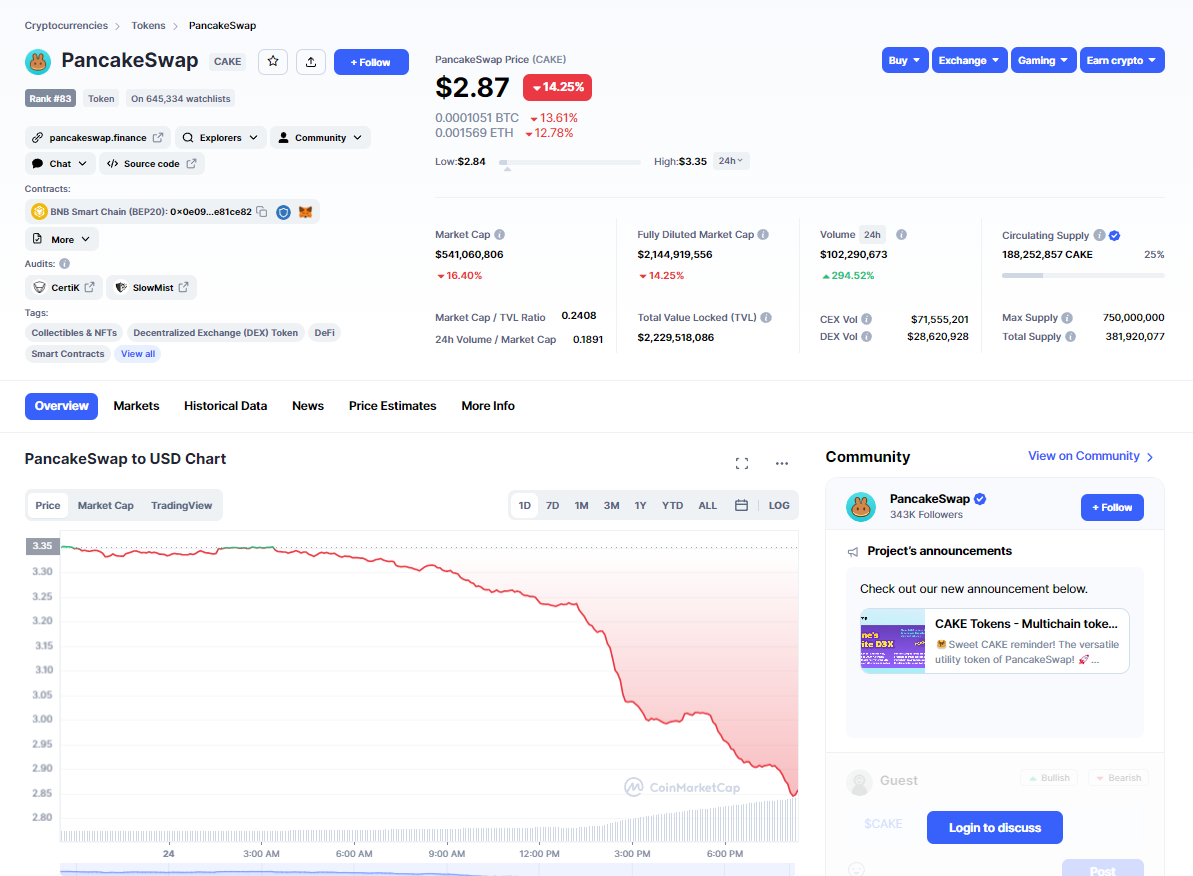 Bu gelişmelerin ardından CAKE fiyatının yüzde 15 oranında düşüş yaşadığı görüldü. Her ne kadar piyasada satıcılar hakim olsa da, genel altcoin piyasasında böyle bir çöküşün yaşanmadığı gözlenmekte.
