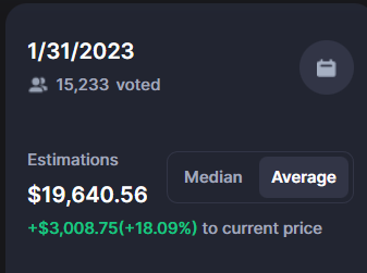 Başarılı veri sağlayıcısı CoinMarketCap üzerindeki ankete katılan yatırımcılar, lider kripto para birimi Bitcoin’in 31 Ocak 2023 tarihinde 19.600 dolar seviyelerinde olacağını tahmin etmekte.