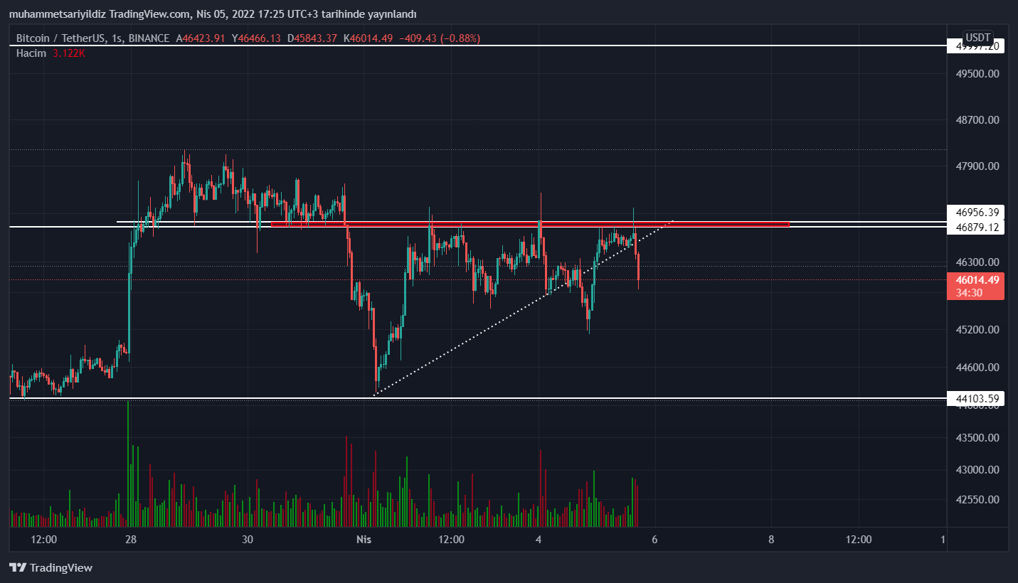 Haberimizin yazıldığı esnada 46.000 dolar seviyelerinde bulunan Bitcoin, 47.200 dolar bölgesinden yine sert bir şekilde reddedildi.
