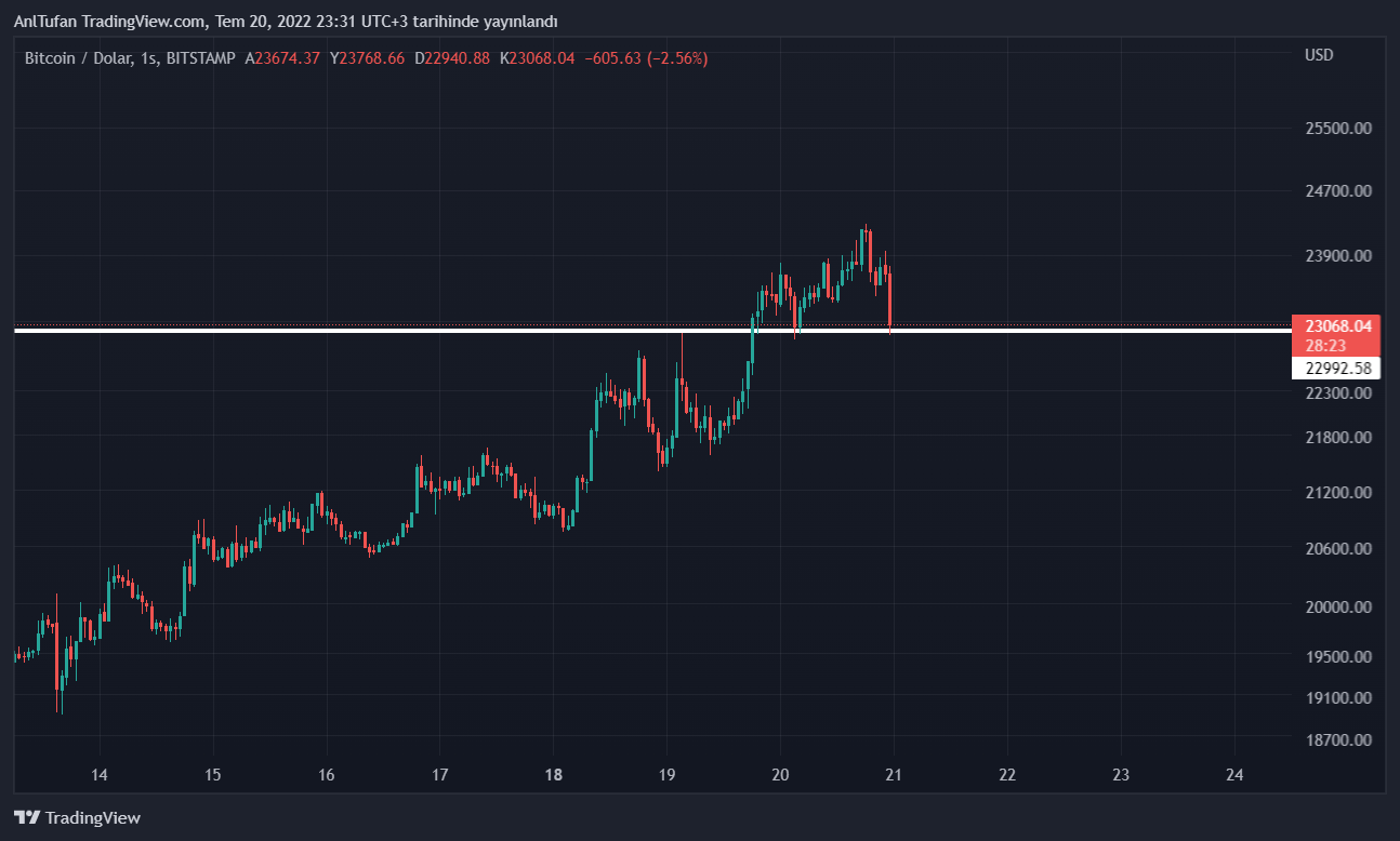 Şuan itibariyle Bitcoin ve altcoin yatırımcıları lider kripto para biriminde 23 bin dolar desteğini takip etmeleri gerekiyor.