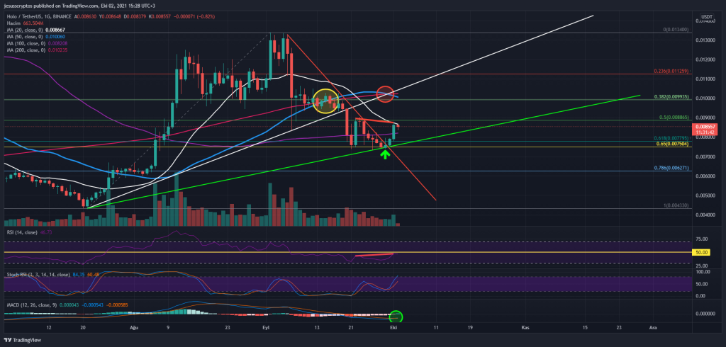Bu seneki en yüksek seviyesi olan 0,0316 dolardan %73 geride bulunan HOT, Eylül ayı boyunca yaşadığı düşüş trendini ayın son günlerinde kırmayı başardı. Bu kırılımla birlikte %15’lik bir yükseliş yaşayan ve 0,0085 dolar üzerinden alıcı bulan HOT grafiğinde dikkat edilmesi gereken önemli noktalara değinmek istiyoruz…